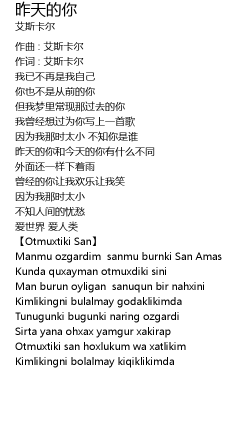 | zuo tian de ni he jin tian de ni you shen me bu tong | |