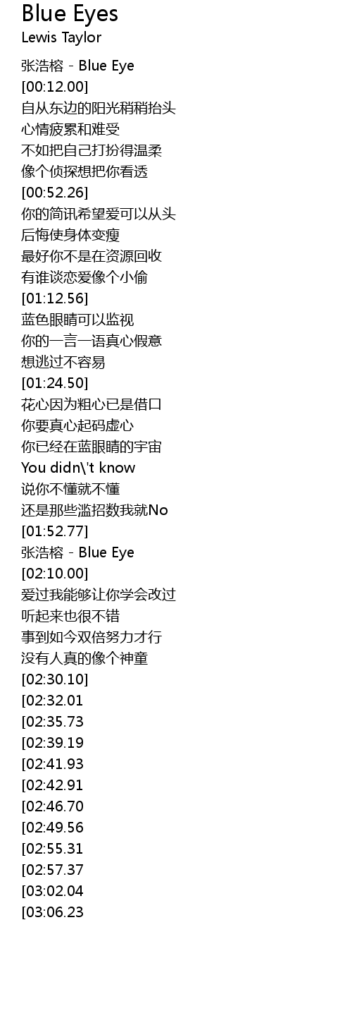 | [02:02.35] | 张浩榕 - Blue Eye |