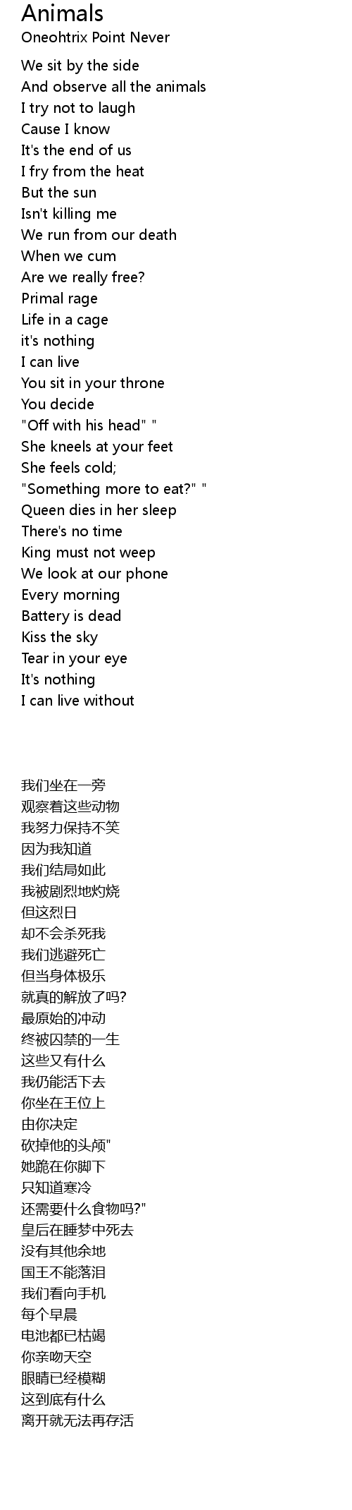 | Song | Animals |