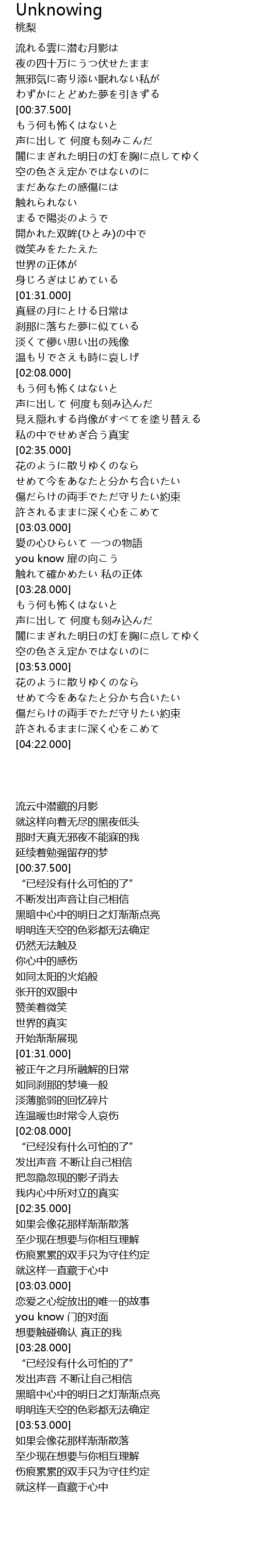| [03:22.000] | 触れて確かめたい 私の正体 |