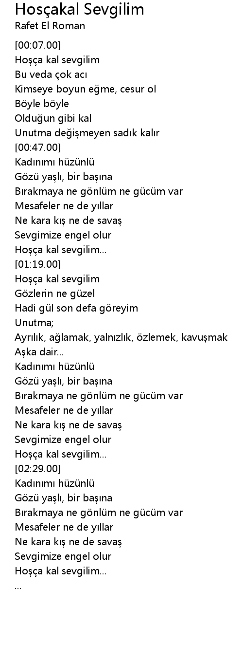 | [01:42.00] | Hadi gü l son defa g reyim |