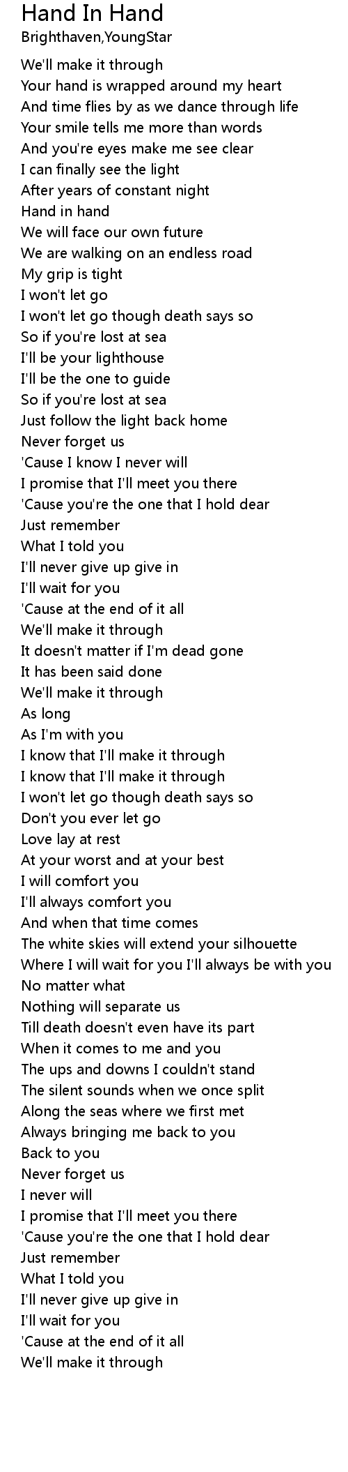 | [00:53.24] | Hand in hand |