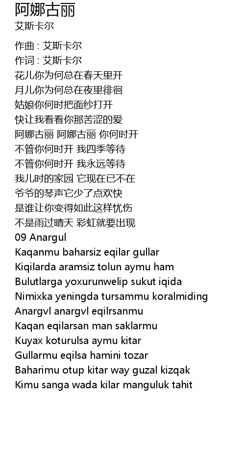 | 阿娜古丽 阿娜古丽 你何时开 | |