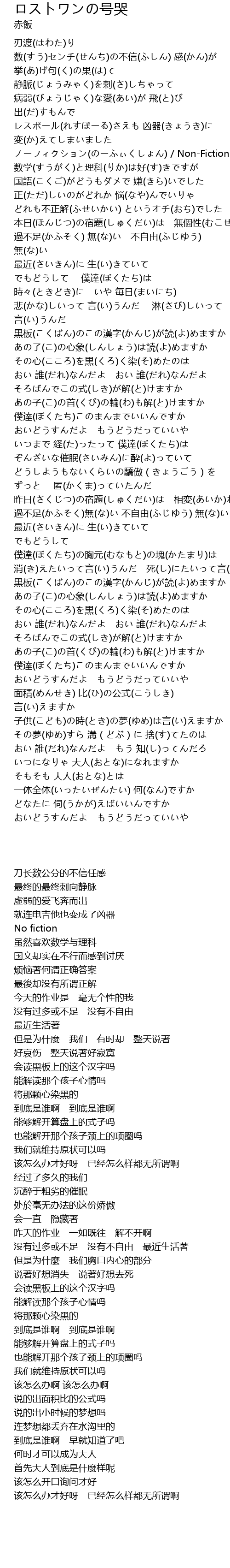 | [00:58.66] | 本日(ほんじつ)の宿題(しゅくだい)は 無個性(むこせい)な僕(ぼく)のこと |