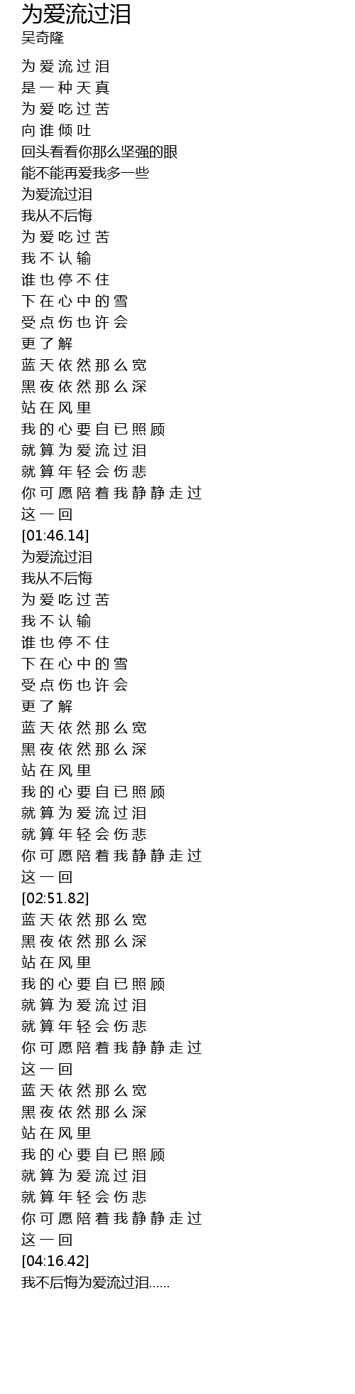 | [04:17.22] | 我不后悔为爱流过泪...... |