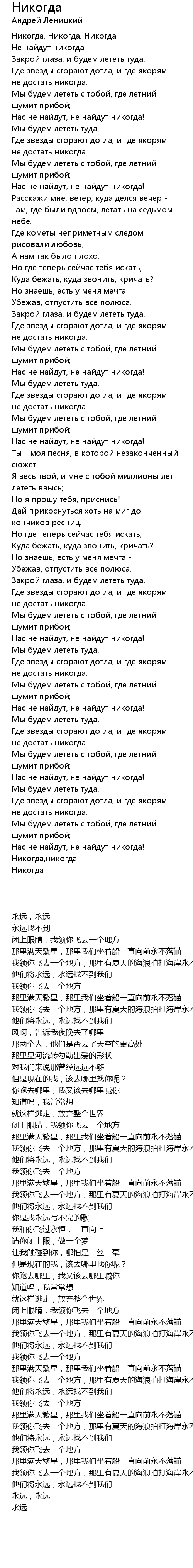 Никогда  Lyrics