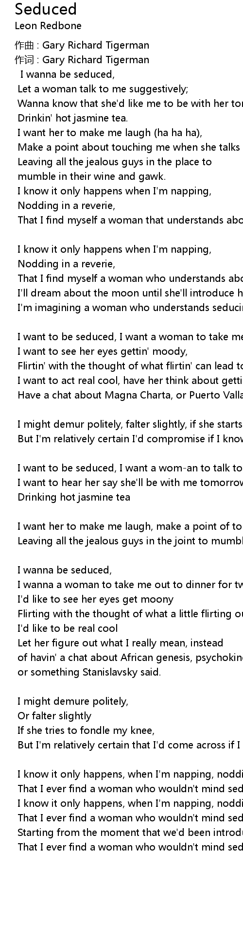 | I wanna be seduced, | |