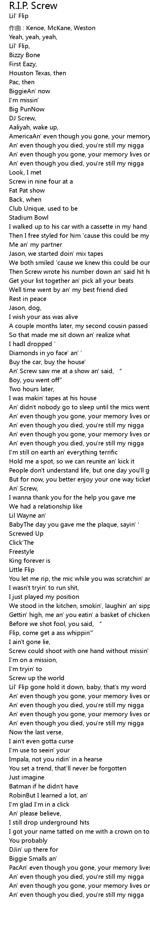 | Song | R.I.P. Screw |