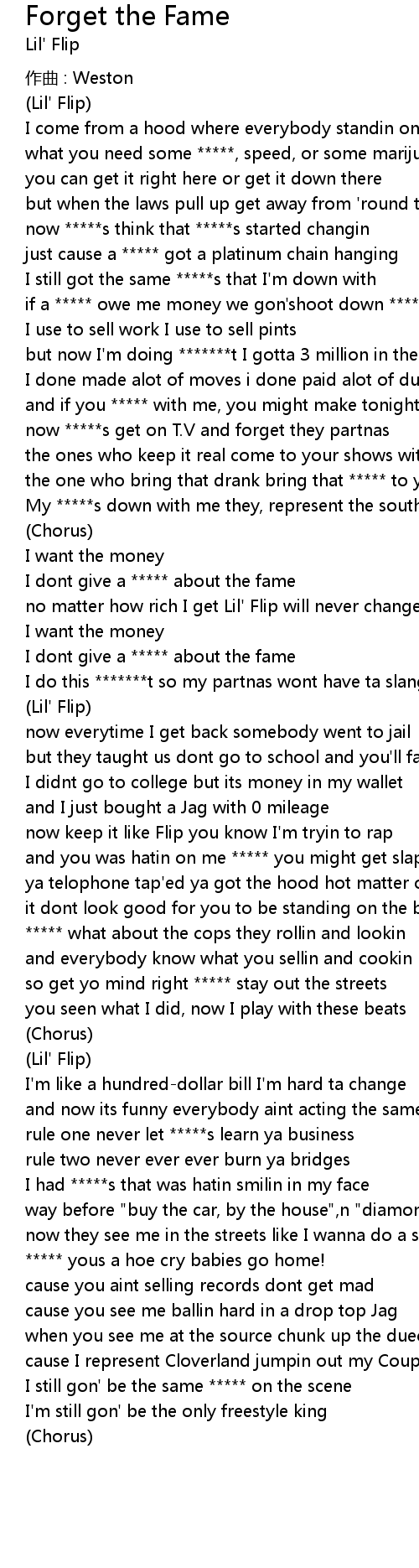| I dont give a ***** about the fame | |