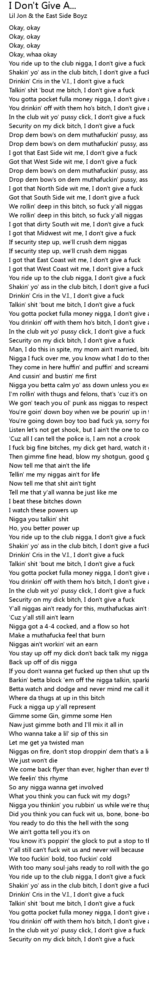 Talkin' shit 'bout me bitch, I don't give a fuck |