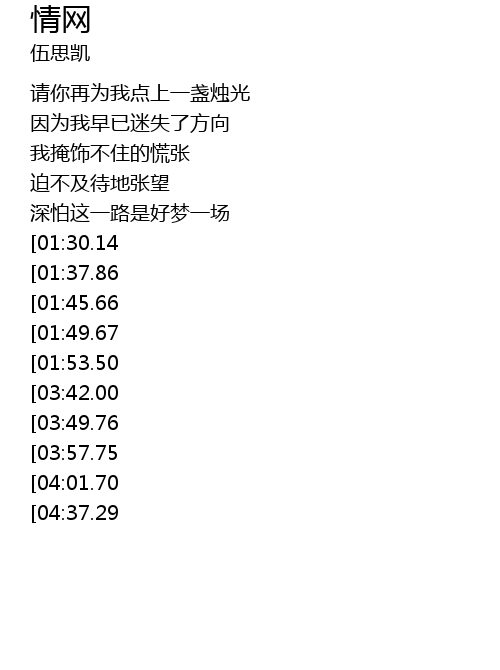 | [03:11.00][01:30.14] | 而你是一张无边无际的网 |