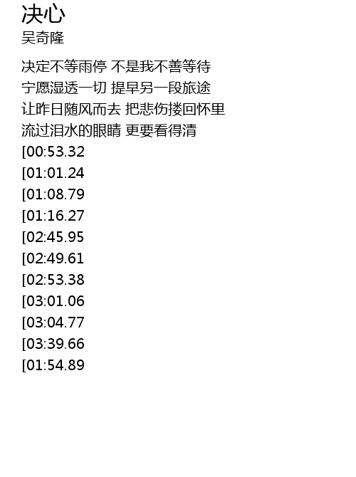 | [00:23.21] | 决定不等雨停 不是我不善等待 |