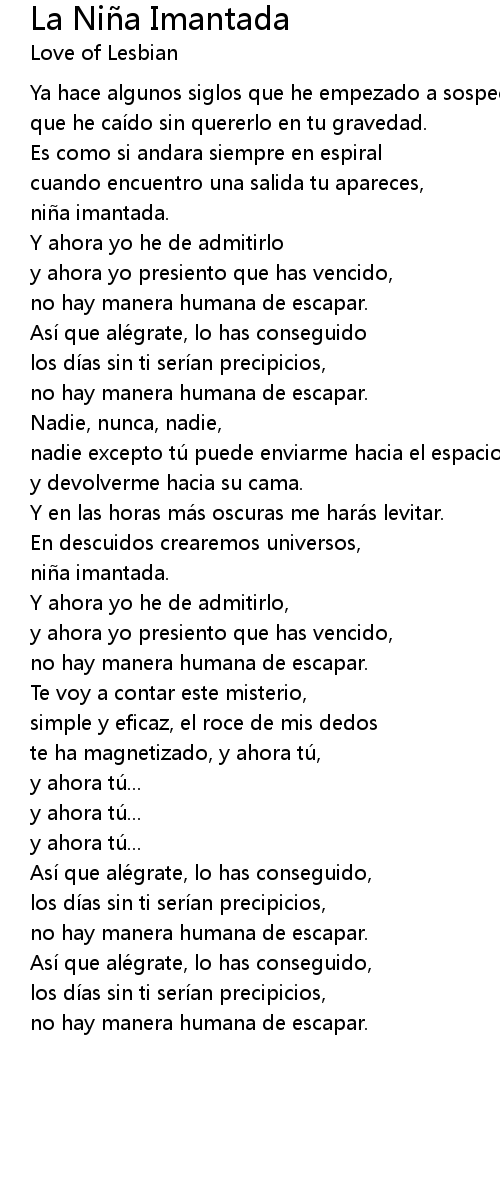 | Song | La Niña Imantada |