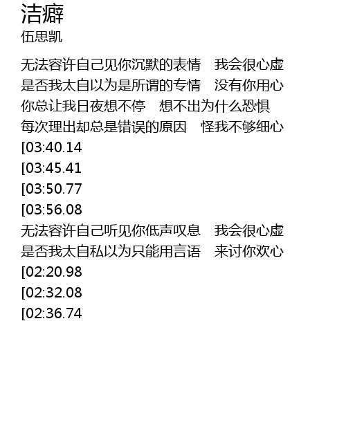 | [04:12.11][03:50.77][02:52.58][01:37.78] | 我的感情有洁癖 谁都代替不了你 |