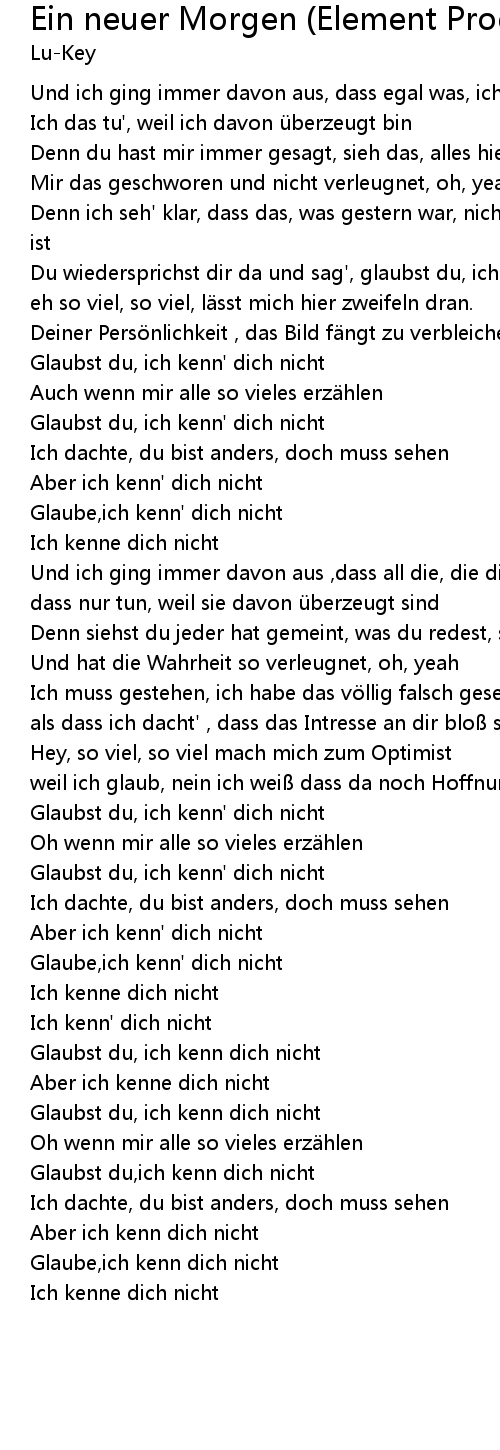 | [00:58.84] | Ich dachte, du bist anders, doch muss sehen |
