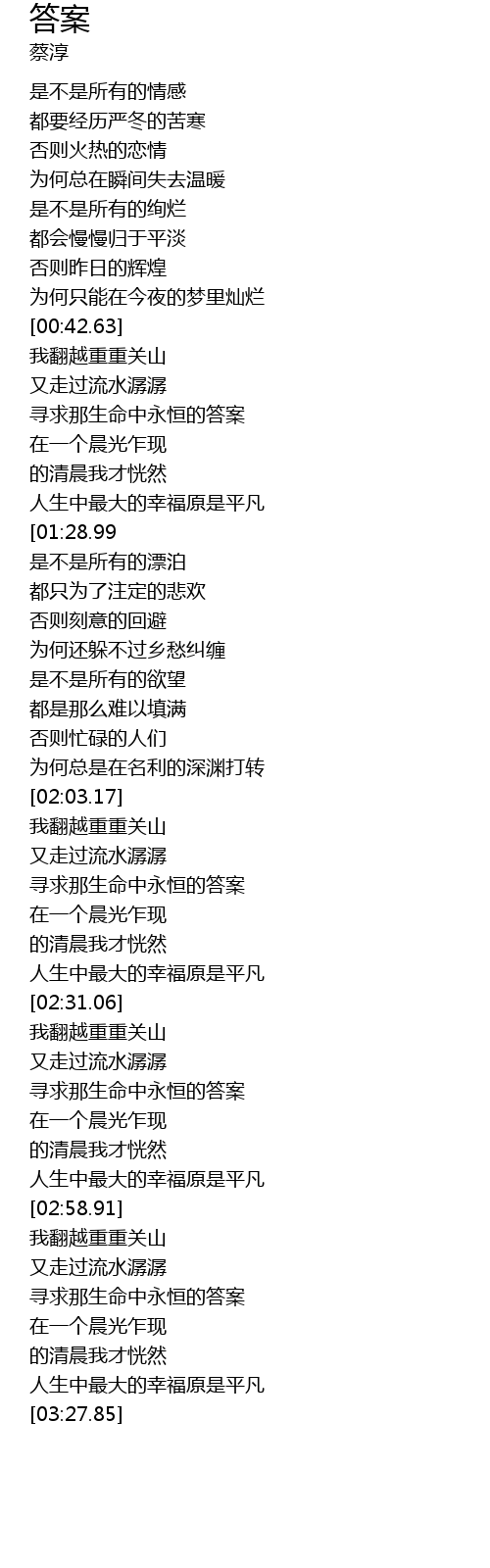 | [00:51.38] | 寻求那生命中永恒的答案 |