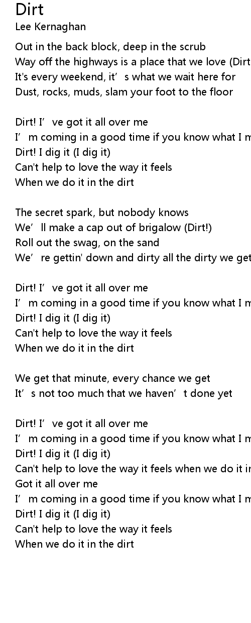 | Can't help to love the way it feels when we do it in the dirt | |