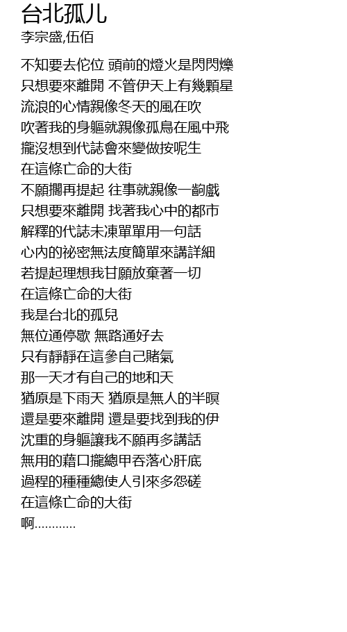 | [02:34.50] | 我是台北的孤兒 |