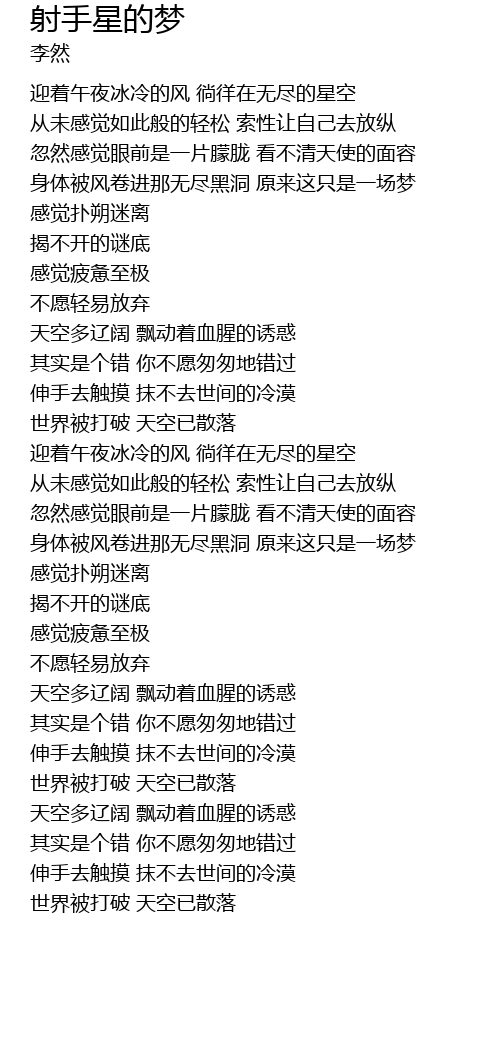 | [02:23.248] | 身体被风卷进那无尽黑洞 原来这只是一场梦 |