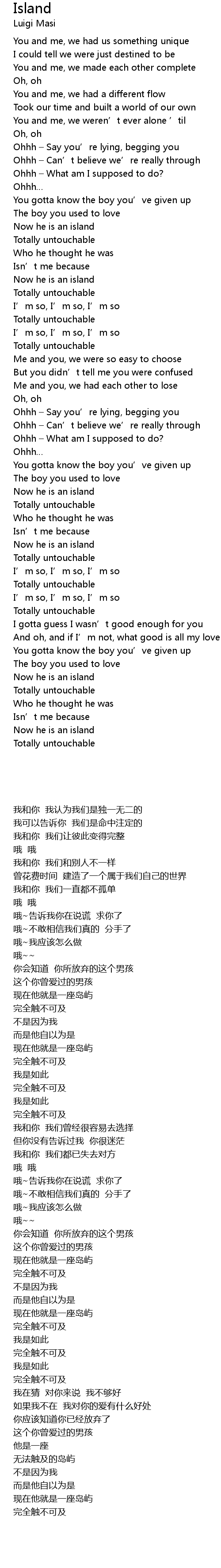 | [02:22.63] | Now he is an island |