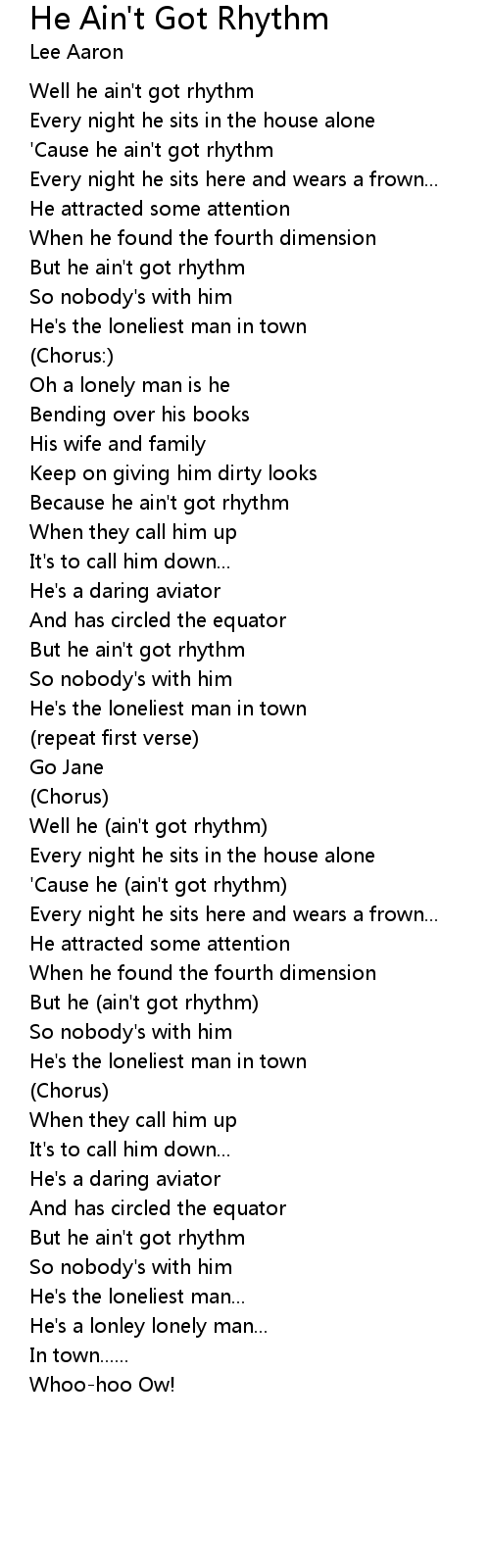 'Cause he ain't got rhythm |