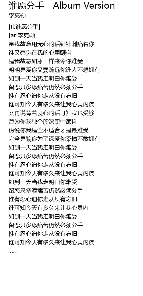 | [00:52.709] | 留恋只多添痛苦仍然必须分手 |