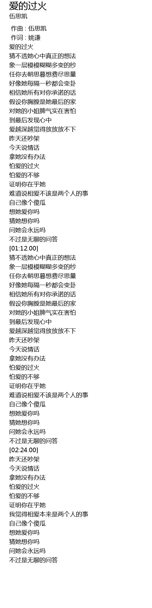 | [01:58.00] | 怕爱的过火 |