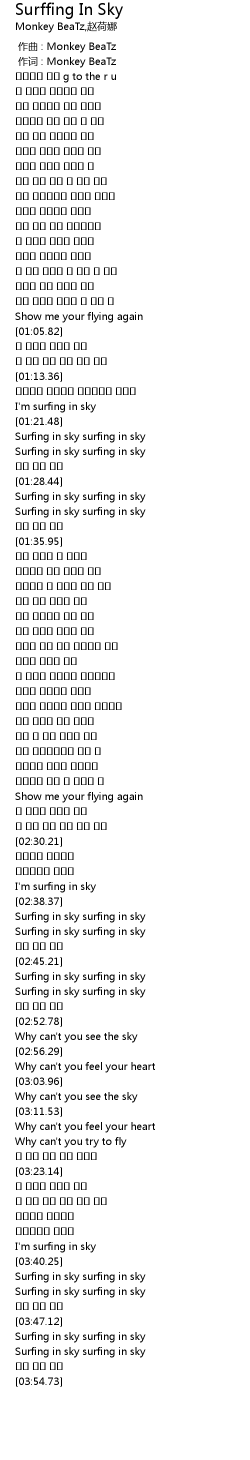 | [02:38.99] | Surfing in sky surfing in sky |