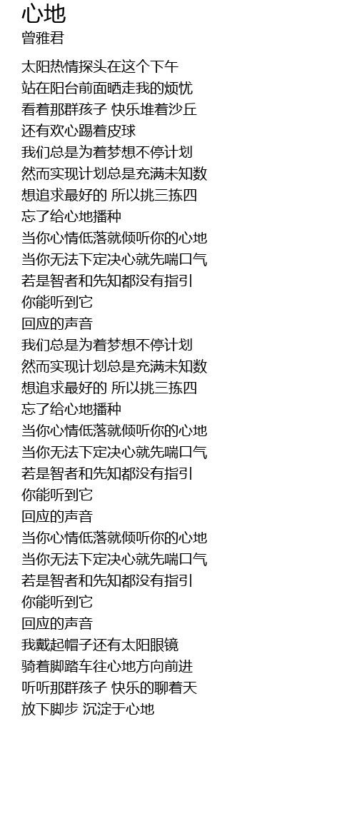 | [03:12.41] | 放下脚步 沉淀于心地 |