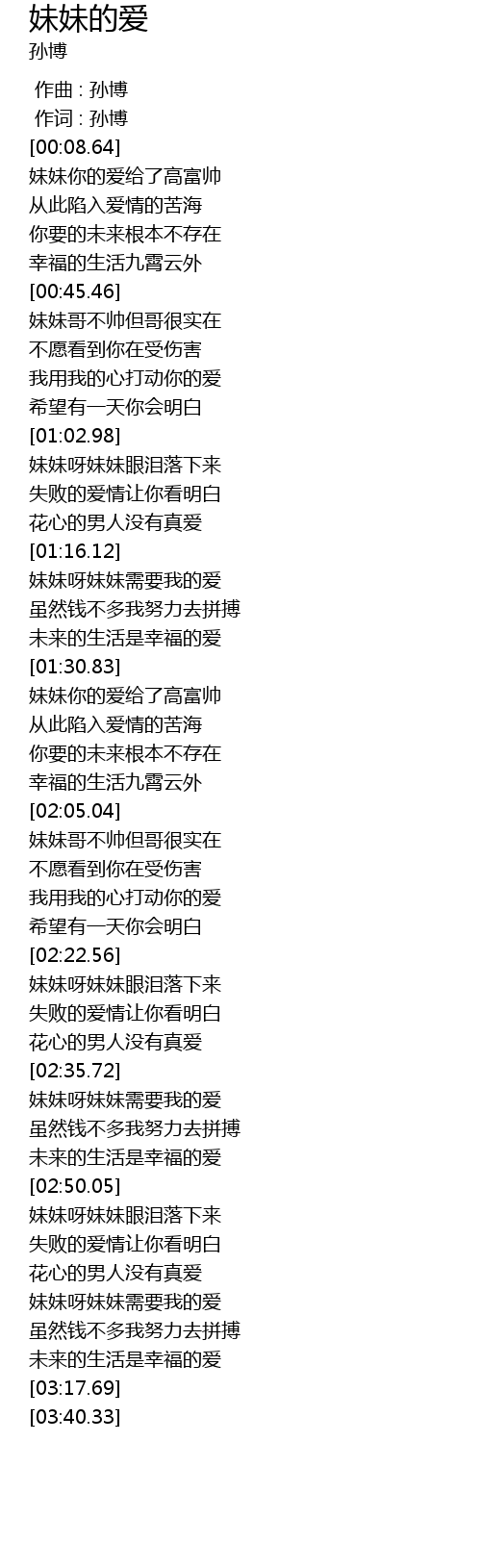 | [03:03.19] | 妹妹呀妹妹需要我的爱 |