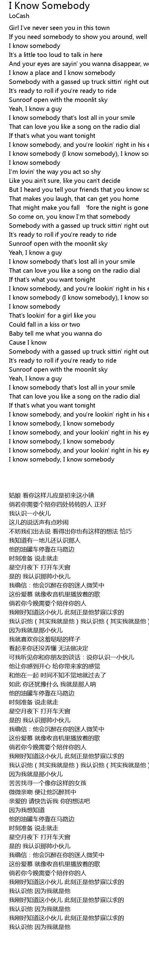 | [02:47.67] | I know somebody, I know somebody |