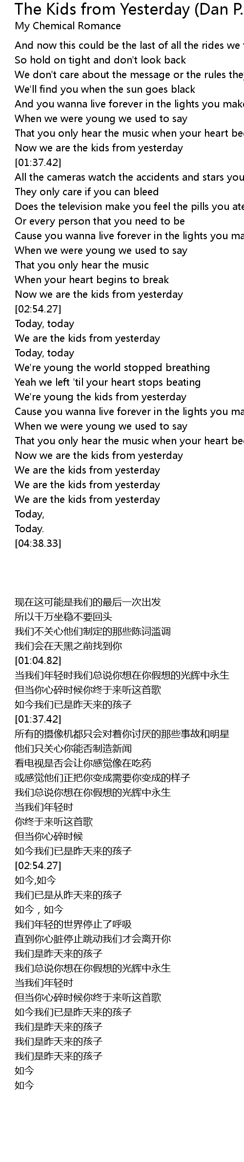 The Kids from Yesterday (Dan P. Carter Mix) Lyrics
