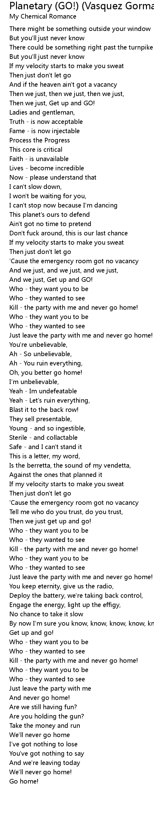 Don't fuck around, this is our last chance |