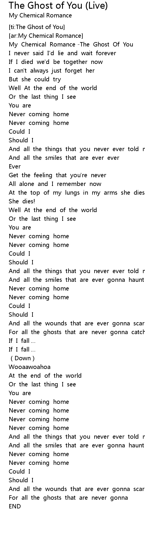 | [00:03.320] | My Chemical Romance The Ghost Of You |