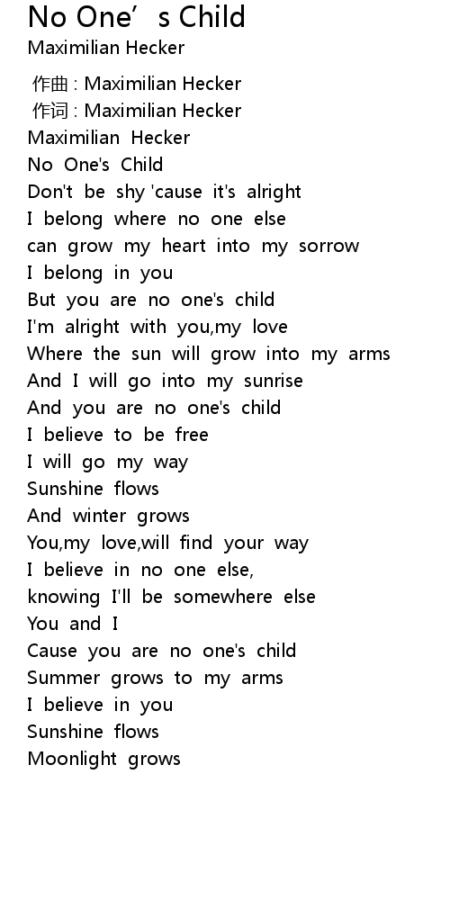| [00:54.89] | And you are no one's child |