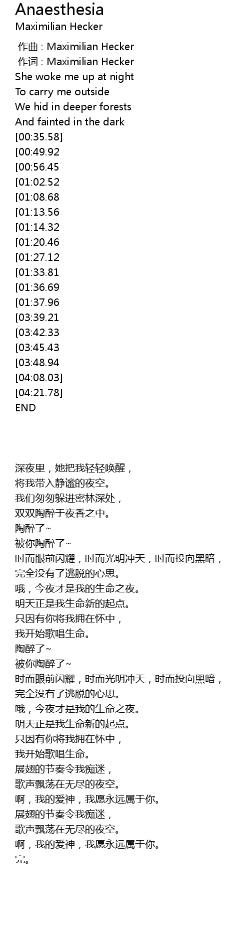 | [02:20.53][00:56.45] | Anaesthesia |