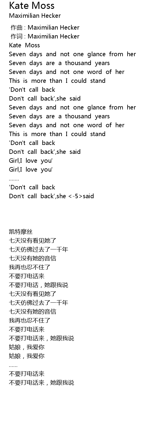 | [00:01.00] | 作词 : Maximilian Hecker |