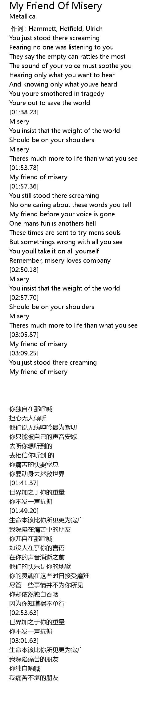 | [00:00.00] | zuo ci : Hammett, Hetfield, Ulrich |