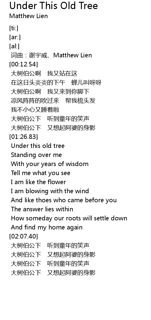 | [01:12.02] | 大树伯公下 听到童年的笑声 |