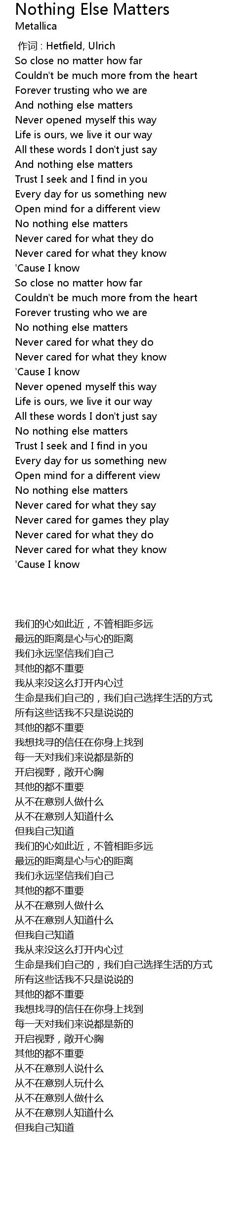 | [00:00.00] | 作词 : Hetfield, Ulrich |