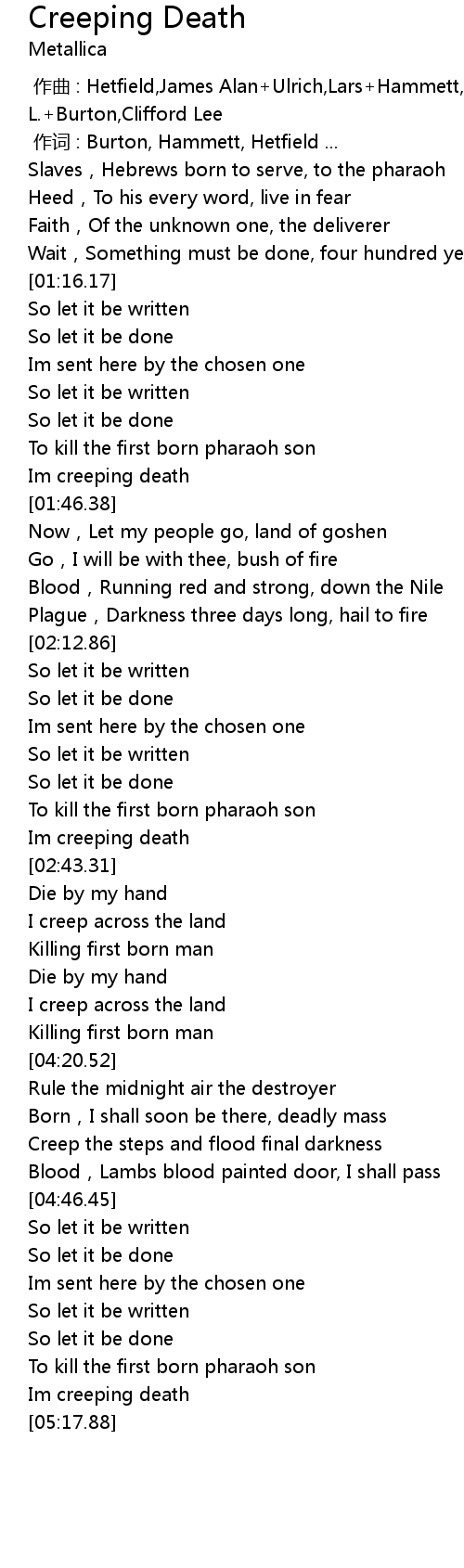| [01:43.86] | Im creeping death |