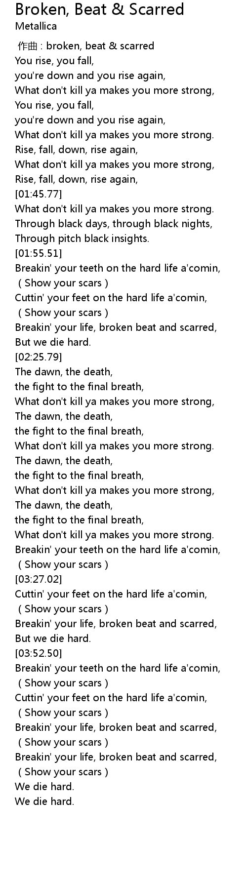 | [03:36.13] | Breakin' your life, broken beat and scarred, |