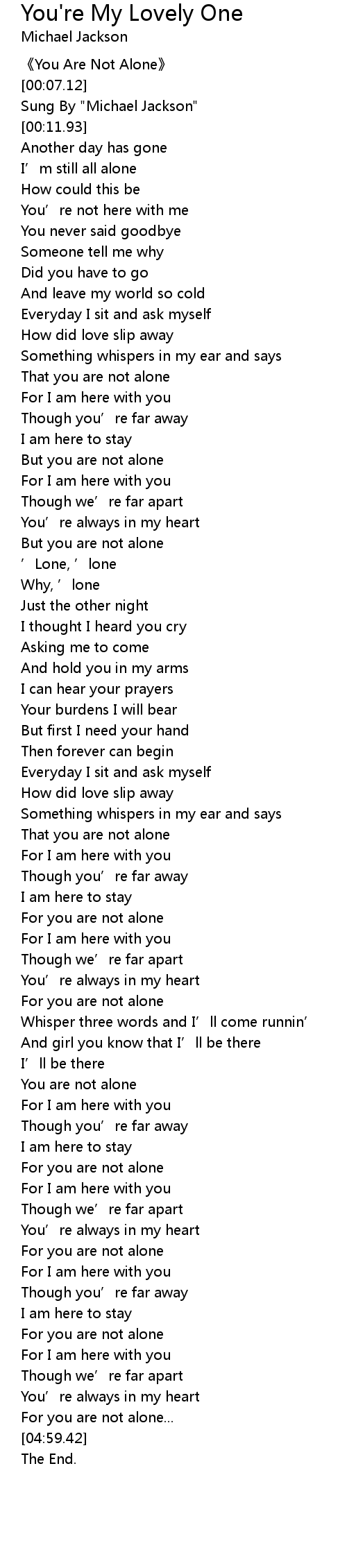 | [00:03.11] | You Are Not Alone |