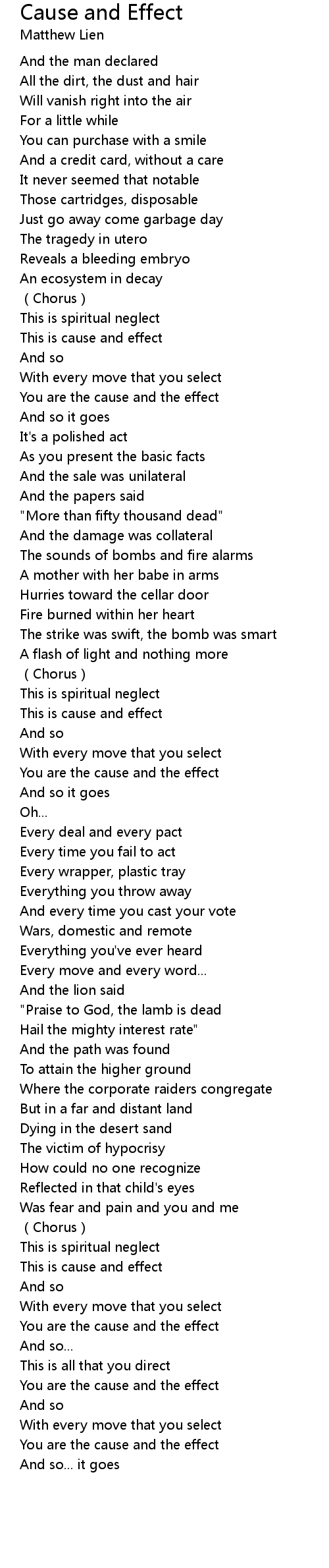 | Song | Cause and Effect |