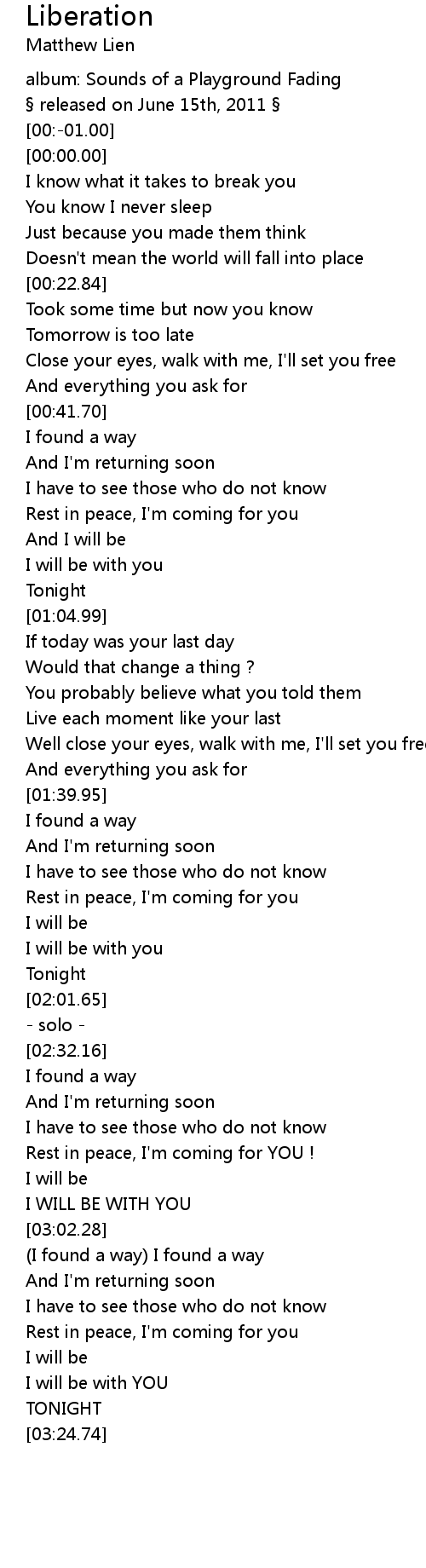 | [00:-03.00] | album: Sounds of a Playground Fading |