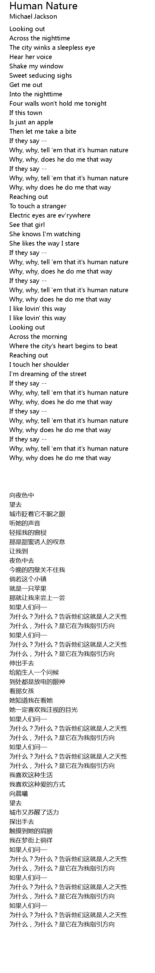 Why, why, tell 'em that it's human nature |