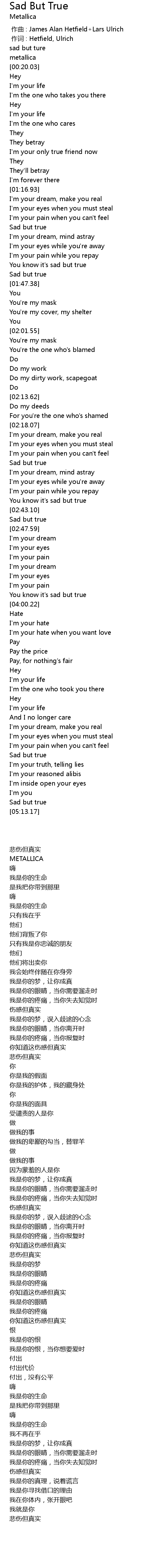 | [00:00.00] | zuo qu : James Alan Hetfield Lars Ulrich |