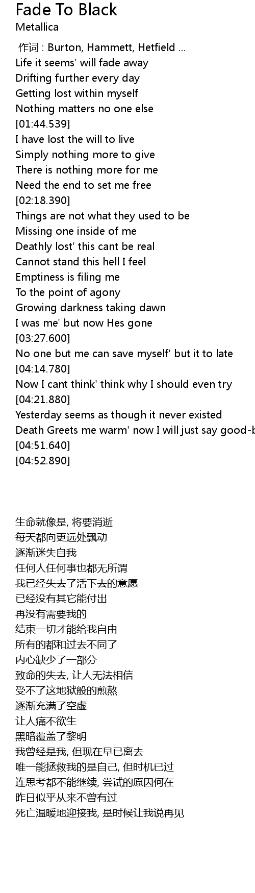| Song | Fade To Black |