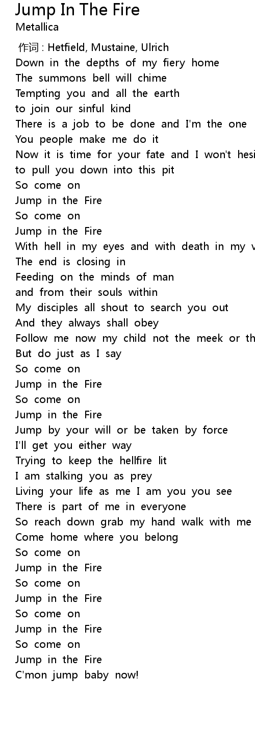 | [00:00.00] | zuò cí : Hetfield, Mustaine, Ulrich |