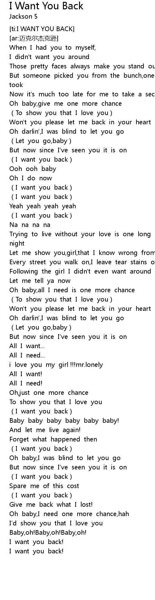 | [02:18.764] | (I want you back) |